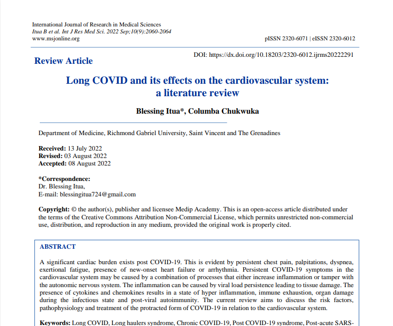 Below you will find an overview of some of the research work students and faculty of Richmond Gabriel University, College of Medicine, Saint Vincent and the Grenadines have published and/or presented.